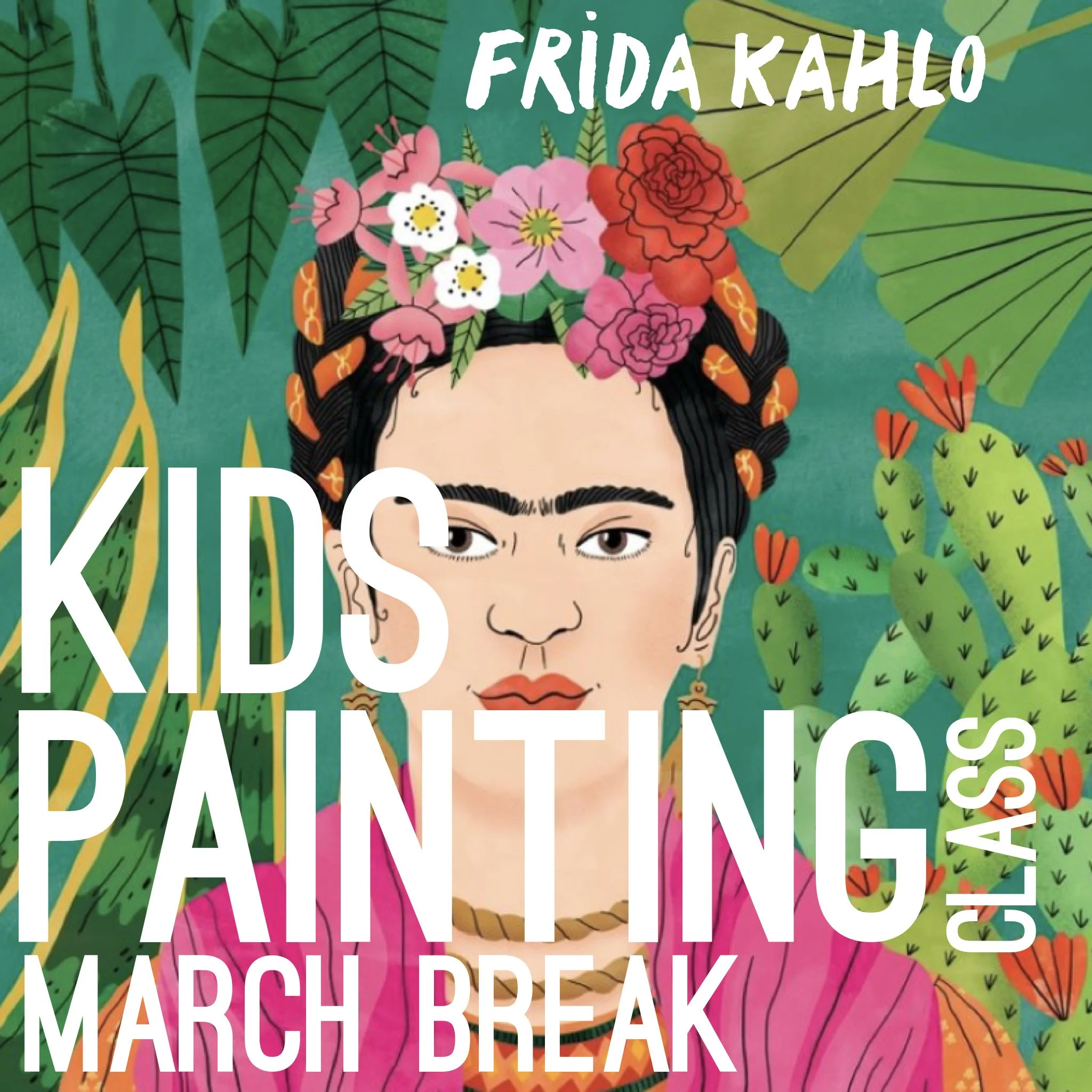 Students will be guided throughout the day to create a master-inspired painting as they learn how to mix, blend and apply paint in a fun and functional way. This class is well-guided so your child will learn new and lasting painting techniques. Their confidence will grow as their artwork transforms from blank canvas to colourful painting. In this series we will paint a vibrant and beautiful portrait of Frida Kahlo. Heads up, you will likely want to keep this painting forever and it might just be the best piece of art in your home!